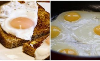 Jajčno zmes je treba dobro premešati in jo dati na košček kruha, popečenega na suhi ponvi.